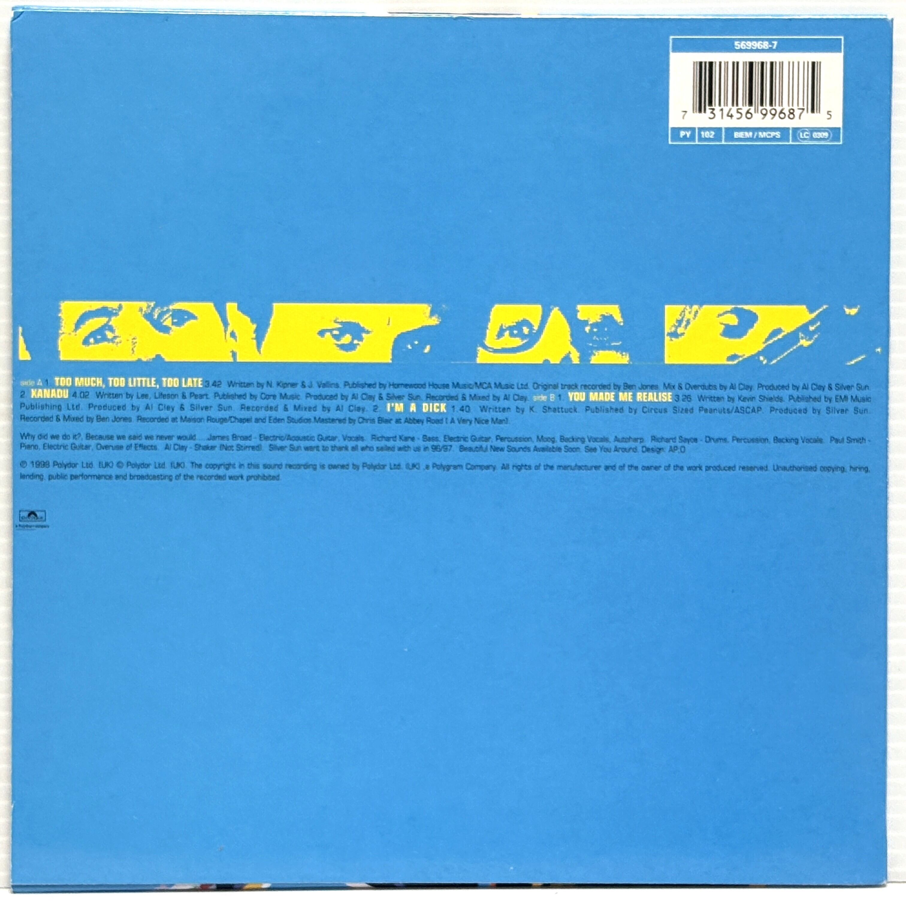 Silver Sun / Too Much, Too Little, Too Late (7 inch Blue Translucent Vinyl) ■中古盤■ MBV"You Made Me Realize"カバー収録