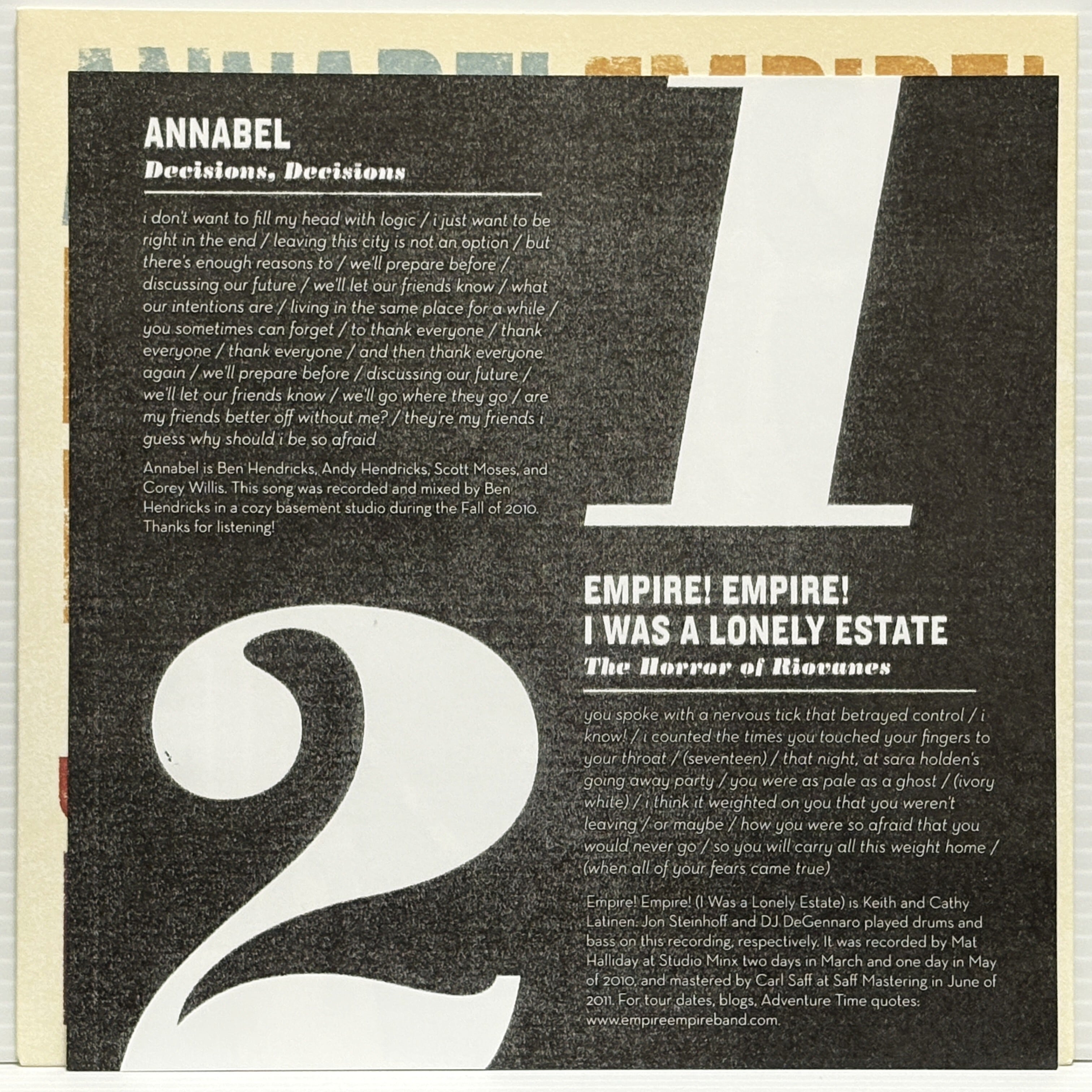 Annabel / Empire! Empire! (I Was A Lonely Estate) / Joie De Vivre (3) / The Reptilian