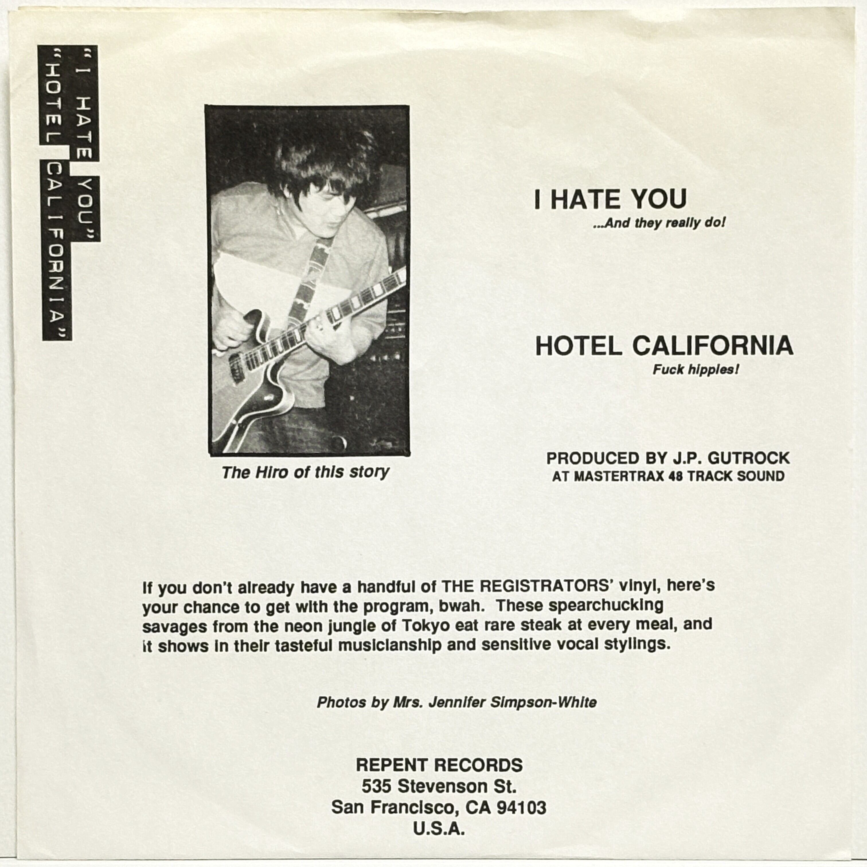 The Registrators / I Hate You : Hotel California (Eaglesカバー) (7 inch) ■中古盤■