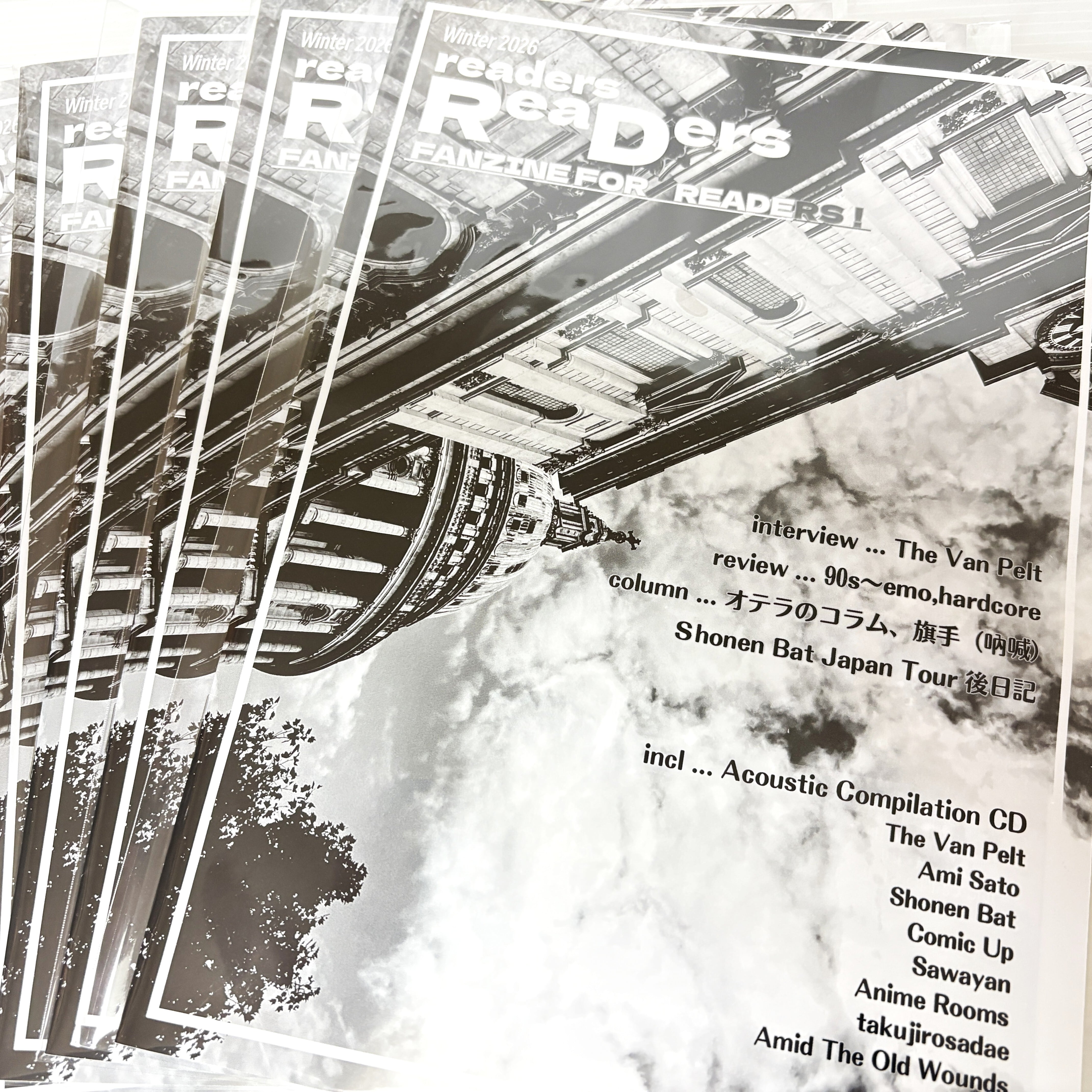 90年代、アメリカのディストリビューターから届いた一冊のZINEに心を撃ち抜かれた記憶は、いまも色褪せない。”readers ReaDers” は、ハードコア、エモ、DIYパンクへの個人的な愛情を出発点に生まれたZINEです。名前も知らなかったバンドのインタビュー、無骨なレイアウト、手触りのある紙。ページをめくるたびに「音楽が遠くの街で鳴っている」感覚を思い出させてくれた、ZINEたちへのオマージュとして創刊。
